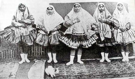 Podle legendy byl šáh Kayar okouzlen ruskými tanečnicemi a zavedl tento typ šatů pro své manželky, které se takto mohly objevit pouze před jeho objektivem.