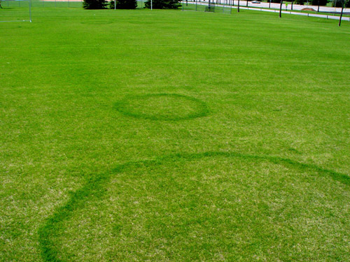 Není těžké uhodnout, že záhadné prstence bujné trávy s velmi kontrastním, uschlým vnějším obrysem jsou jasným výsledkem sezónního vývoje mycelia.