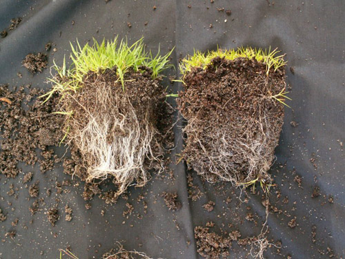 Obr.3 Jasný příklad – s myceliem nebo bez něj.