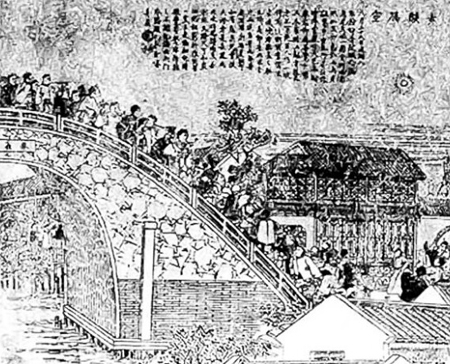Obr. 3 Lidé pozorují červené plameny na obloze. Kresba Wu Youru (což byl jeden z vynálezců komiksu!)