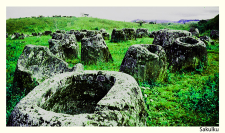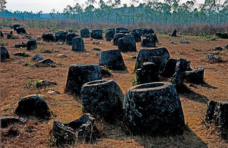 V něm jsou roztroušeny tisíce obrovských kamenných nádob. Většina z nich jsou válcovité, ale jsou zde také oválné, obdélníkové… Jejich průměr se pohybuje v rozmezí od 0,5 do 3 m a váží do 6 tun. Původ těchto tajemných artefaktů zůstává pro archeology záhadou.