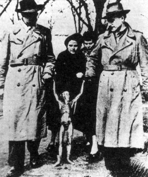 Existují minimálně dva snímky, které se vydávají za fotografie „bytostí z Aztéku“. Jeden z nich byl poprvé publikován v časopise Kolner Stadtanzeiger v roce 1950. Pokud se podíváme na ruku agenta, stojícího nalevo, je dobře vidět, že v ní drží droboučké prsty humanoida se zaokrouhlenou dlaní. Je zřejmé, že muži tlačili dětský kočárek, ale ten je vyretušován a místo něj byla zamontována figurka „humanoida“.