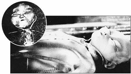 Uvnitř něj našli místní lidé těla 16 mrtvých, člověku podobných bytostí, malého vzrůstu. Místní noviny je popsaly jako bytosti s velkýma, jakoby šikmýma očima. Nos i rty byly malé. Křehké kosti, tenké končetiny, ruce dlouhé do kolen. Prsty také dlouhé, tenké, mezi nimi něco, podobné plovací bláně. Pověsti o katastrofě se donesly až k šéfovi FBI Edgaru Hoowerovi.