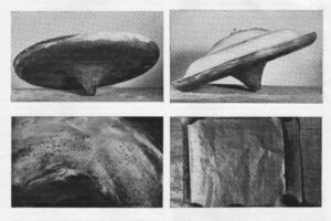 Běžel k němu, aby objevil podivný disk a vedle dvě bytosti podobné lidem. Disk měl tvar klasického létajícího talíře o průměru 46 cm, výšky 23 cm a vážil kolem 16 kg. Uvnitř Frank našel 17 velmi tenkých listů měděné fólie, pokryté hieroglyfy.