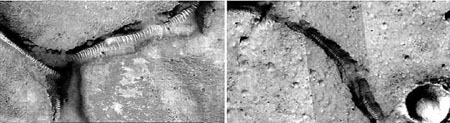 Obr. Sklenění „červi“ na Marsu jsou pravděpodobně výsledkem úderu kometárního výboje na povrch Rudé planety, domnívá se J. Dmitrijev